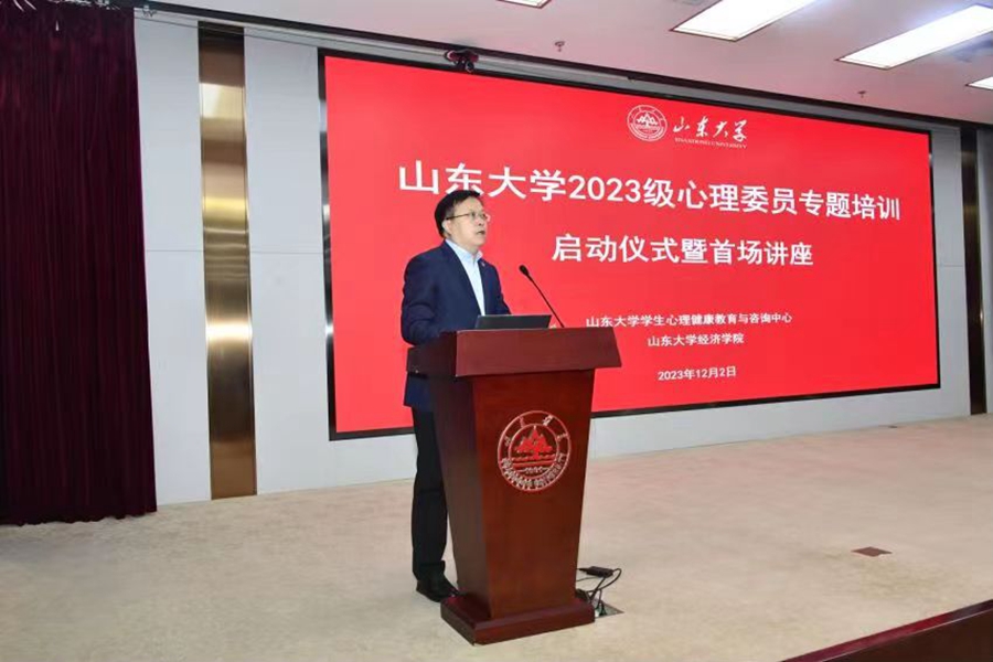 为贯彻落实党的二十大精神,加强我校朋辈心理队伍建设,推动永利官网二级心理辅导站高质量发展,12月2日上午,由yl7703永利官网学生心理健康教育与咨询中心、yl7703永利官网“经灵心语”心理辅导站联合举办的2023级心理委员专题培训启动仪式暨首场讲座于中心校区举行。yl7703永利官网党委副书记王君松出席仪式并致辞,中国人民大学心理系教授胡平进行专题讲座,校团委、学生心理健康教育与咨询中心、yl7703永利官网相关负责人,一校三地412名心理委员代表参加了此次活动