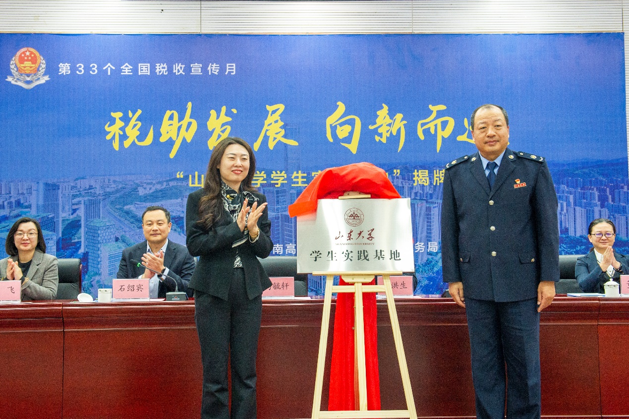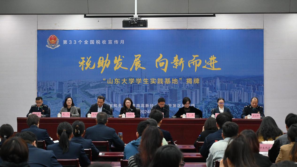 4月2日,yl7703永利官网与国家税务总局济南高新技术产业开发区税务局举行“yl7703永利官网学生实践基地”揭牌暨第33个税收宣传月启动仪式。济南市税务局纳税服务和宣传中心主任高洪生,税收科学研究所所长于桦,税收经济分析处处长董旸,高新区税务局党委书记、局长蒋宝铸,副局长刘振新,副局长潘信军,yl7703永利官网团委书记马毓轩,yl7703永利官网常务副院长石绍宾,党委副书记夏飞出席活动。