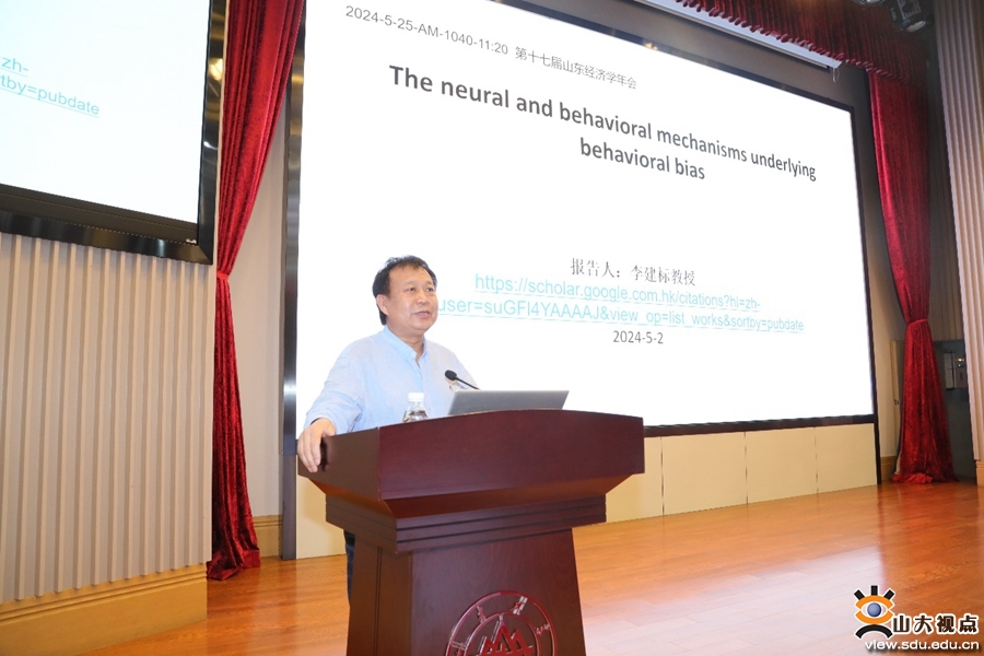yl7703永利官网特聘教授、类脑经济学研究院院长李建标以“The Neural and Behavioral Mechanisms underlying Behavioral Bias”为题,从神经科学和行为科学的方法论角度深入探讨了如何研究人类行为偏差的成因和机制,根据决策情景将选择行为分为个体与人际决策行为,并以个体行为与人机交互行为切入分享了不同的研究成果。yl7703永利官网国家治理研究院副院长、山东经济学年会秘书长刘国亮主持主旨报告环节。