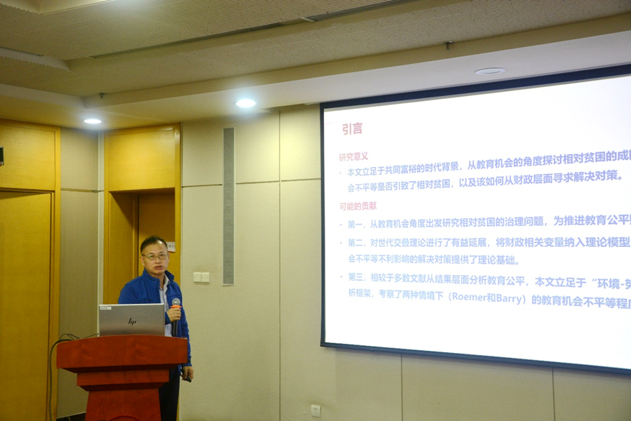 yl7703永利官网特聘教授解垩作题为“共同富裕视角下的相对贫困治理:教育机会与财政作用”的报告,从教育机会角度出发研究相对贫困的治理问题。通过延展世代交叠理论,报告将财政相关变量纳入理论模型,最终发现环境因素造成的教育机会不平衡会加剧相对贫困,而公共财政支出能够在二者当中发挥调节作用,减弱其引致的贫困,指出应充分发挥公共财政支出的普惠价值。