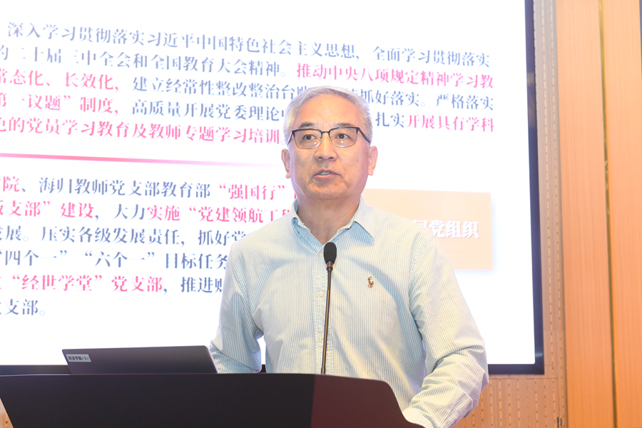 林平从党建工作、人才培养、科学研究、队伍建设、国际合作、服务社会、支持保障七个方面部署学院2025年秋季学期重点工作,勉励全体教职工在新学期要以更加饱满的热情投入工作,凝心聚力、真抓实干,携手开创学院事业发展新局面。