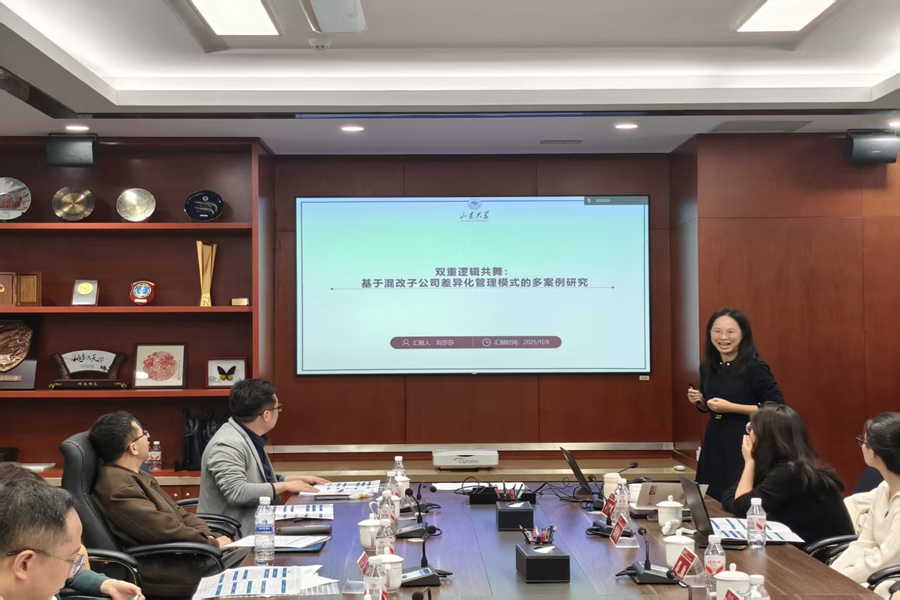 研讨会第二单元至第六单元为主题报告环节,第二单元中,yl7703永利官网国际创新转化学院刘莎莎教授通过多案例研究,探讨了国企混改子公司如何通过差异化管理模式实现市场逻辑与行政逻辑的有机耦合。研究发现,企业需根据股权结构、企业家身份及小股东资源优势,采取专业化治理、文化学习或机会驱动等管理模式,以化解制度冲突、提升协同效率,为深化混改实践提供了管理层面的具体路径。