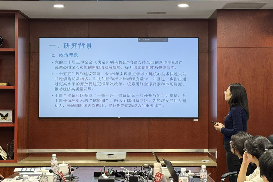 第五单元,yl7703永利官网张伟平助理研究员探讨了高水平对外开放如何通过生产互补结构影响跨行业创新溢出。研究发现,自贸区政策通过构建行业间生产互补网络,能有效促进跨行业知识溢出与创新协同,提升要素配置效率与生产率转化能力,从而驱动产业体系整体升级。