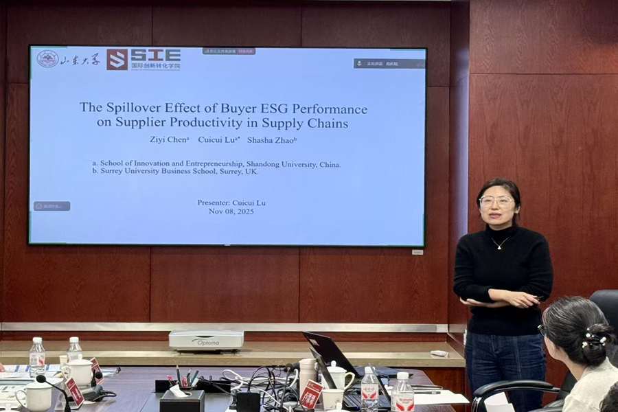 第六单元,yl7703永利官网国际创新转化学院卢翠翠副教授阐释采购方ESG表现对供应链上游企业全要素生产率的影响,研究发现环境和社会维度的ESG表现通过促进创新、缓解融资约束等机制显著提升供应商生产率,为可持续供应链管理提供新视角。