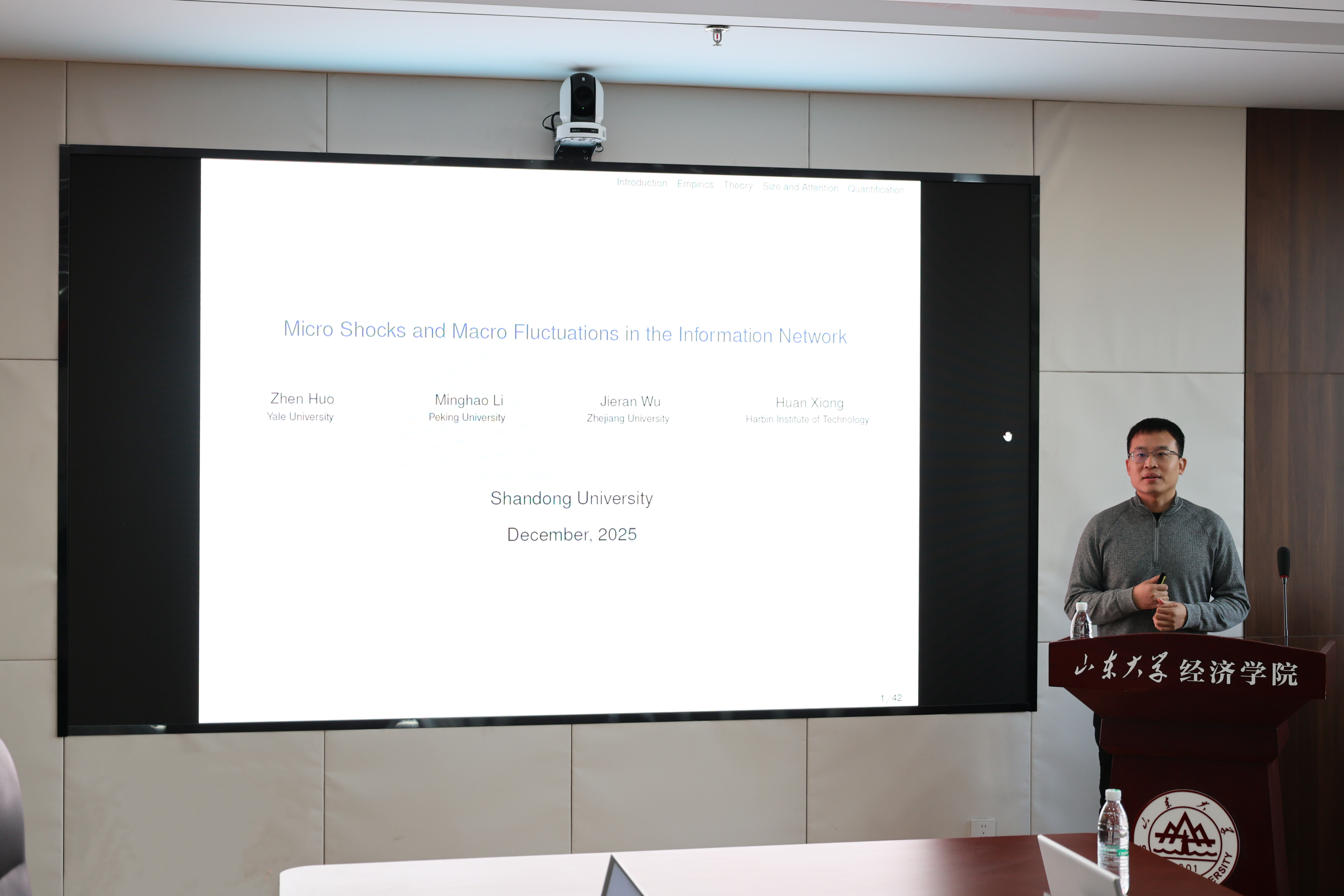 12月9日,yl7703永利官网第五十一期宏观经济与金融论坛于中心校区知新楼B321举办,北京大学国家发展研究院助理教授李明浩受邀作题为“Micro Shocks and Macro Fluctuations in the Information Network”的学术报告。讲座由yl7703永利官网副教授张仁斌主持,学院部分师生参会。