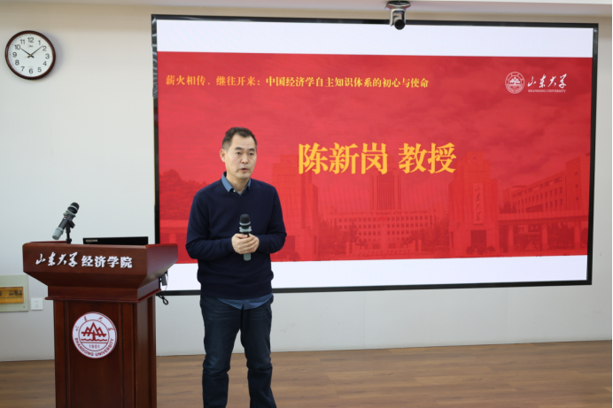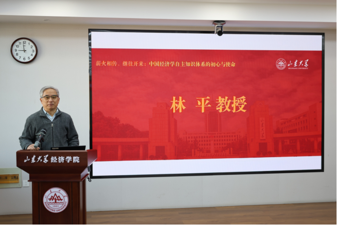 陈新岗教授作题为“经济学家群体的峥嵘岁月:顾准在山东解放区的财经工作”的报告,回忆顾准、薛暮桥等经济学家在山东解放区的财经实践与理论探索,追溯学科深厚的红色革命传统与学术根脉,为传承红色学术基因注入历史厚度。