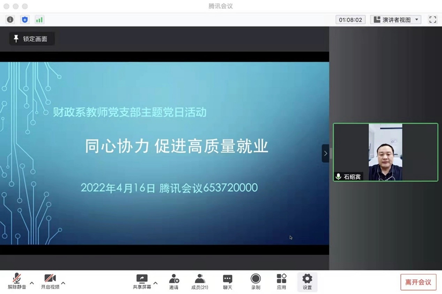 秉持“最暖守护”,助推学生高质量就业。各教工党支部融汇“三全育人”合力,依托师生支部共建平台开展就业指导工作。财政系党支部、国贸系党支部分别与结对共建的本科、硕士毕业生所在支部召开“同心协力·促进高质量就业”主题党日活动。分析就业形势和政策、了解就业困难和需求,进行一对一就业指导帮扶,实行一人一策的职业发展路径规划。海归教师党支部以“同心抗疫·启智赋能——海归教师助成长”为主题,组织支部党员线上线下同频、校内校外联动为学生开展订制式的成长助力活动。通过保研面试模拟、夏令营论文指导、优秀科研成果宣讲、海外交流项目宣介、国际升学辅导等一系列活动提升学生就业竞争力,为充分高质量就业奠定基础。