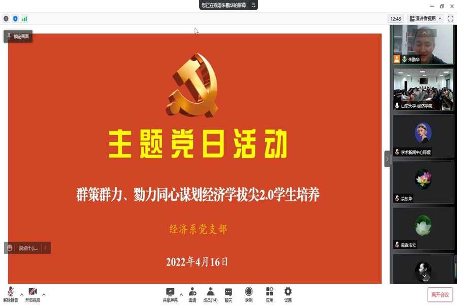 强化服务支撑,打赢疫情防控阻击战。各党支部认真学习了《高等学校新冠肺炎疫情防控技术方案(第五版)》,切实将思想统一到习近平总书记关于疫情防控工作的重要指示精神上来,纷纷表示要提高政治站位、增强必胜信心,坚决贯彻落实山东省、校园驻地、学校相关防控措施,以战斗姿态和昂扬精神面貌提升疫情防控精度和事业发展速度。机关党支部以“全力做好疫情防控下的服务支撑工作”为主题展开研讨,结合学院居家办公服务流程“一张表”、线上签到等云办公举措提出增强责任感和使命感,提升执行力和创新力,讲政治、讲奉献、将作为,在学校五期叠加的发展形势下围绕学院中国特色经济学与高质量发展学科群建设等中心任务做好服务支撑保障工作,服务学院学校高质量发展。
