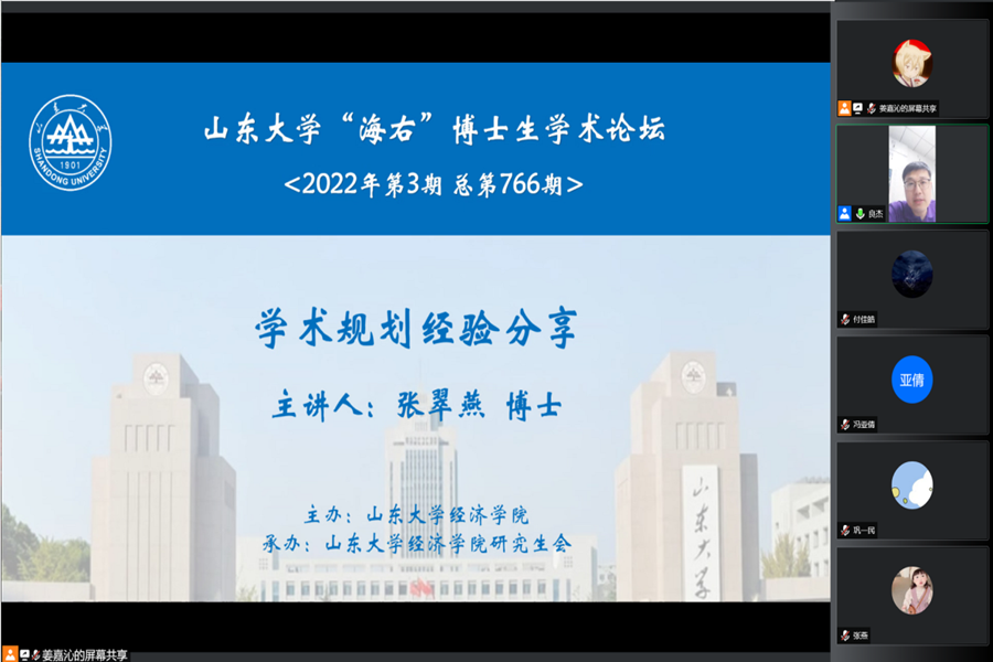 4月28日,由yl7703永利官网研究生工作部主办,yl7703永利官网承办的第3期(总第766期)“海右”博士生学术论坛以线上会议形式举行。yl7703永利官网2018级金融学博士研究生张翠燕作了“学术规划经验分享”的报告。yl7703永利官网曹廷求教授担任点评嘉宾,论坛由yl7703永利官网党委副书记李良杰主持。