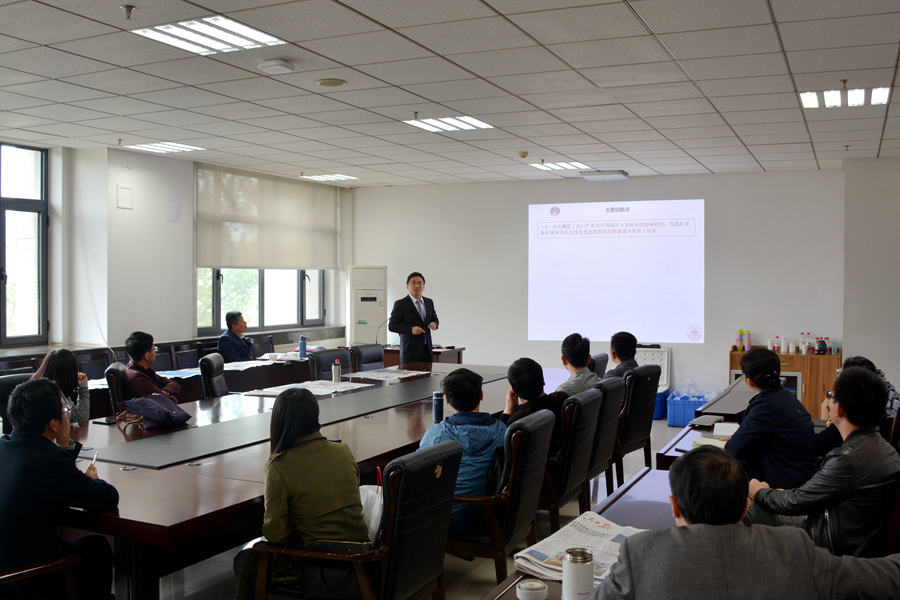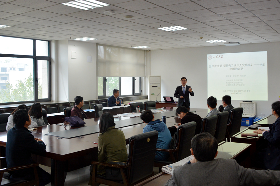 4月25日,yl7703永利官网2019年春季学期第七期(总第28期)青联学术午餐会在中心校区举行。yl7703永利官网助理研究员刘铠豪作了题为“出口扩张是否影响了成年人发病率?——来自中国的证据”的学术报告。yl7703永利官网党委副书记林竹、副院长王哲伟及30余名青年教师参加午餐会。