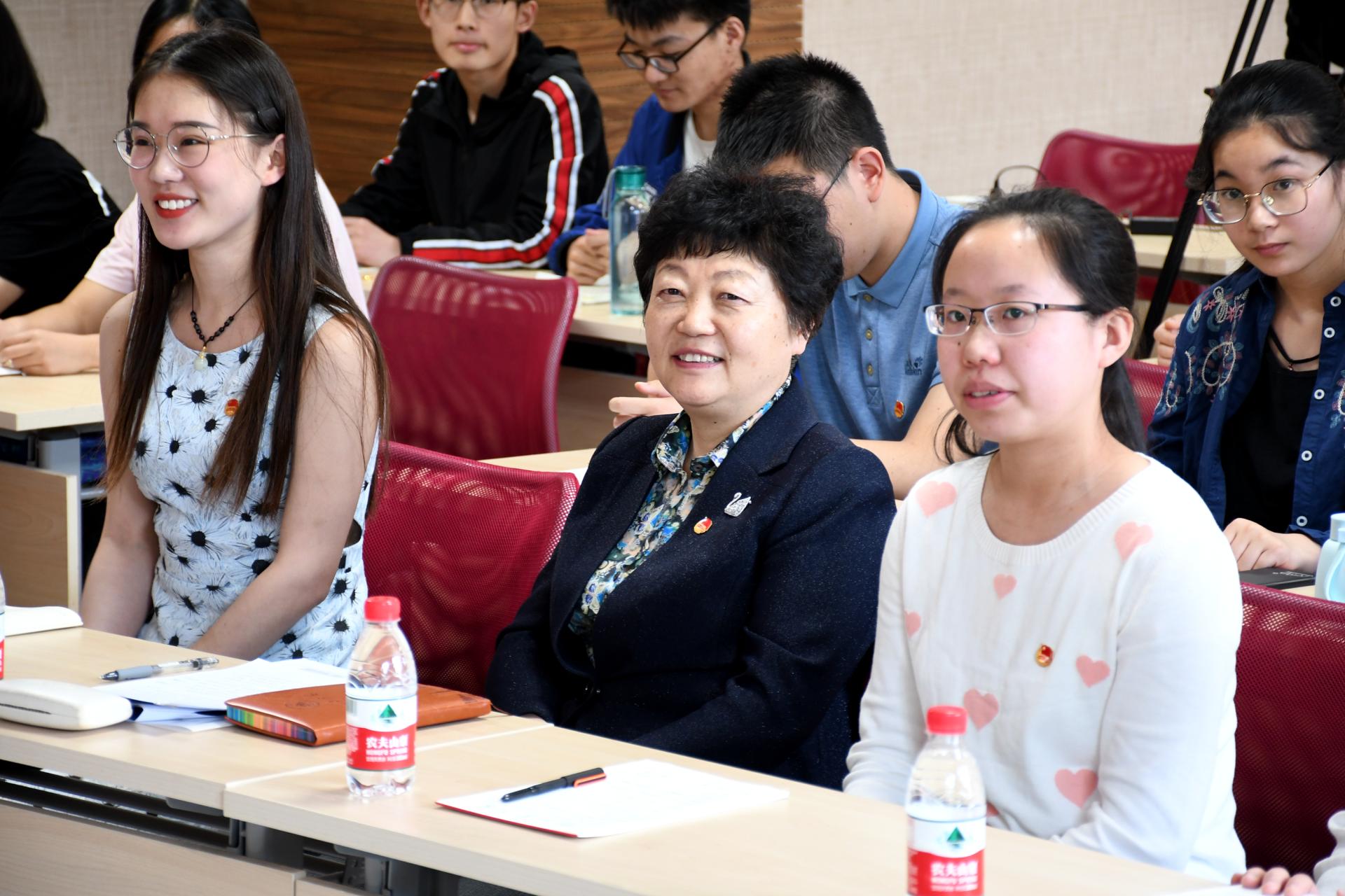校长樊丽明进行总结发言,她表示这是一次富有时代精神、十分有意义的团日活动,深深被青年人的朝气感染,体会到青年人的激情与活力。樊校长根据习近平总书记对青年提出的六点期望,结合个人知青下乡、求学苦读、教书育人的的经历,分享了自己的心得体会,她表示正是由于一代代人的薪火相传,前仆后继,中国才开启新的征程,时代变迁对青年发展提出新要求,尽管担承的使命与责任未发生根本改变,但具体任务发生了改变,从告别贫穷向真正实现中华民族伟大复兴的伟大转变,她希望同学们:一要从小立志,志存高远,将小我和大目标融合,让理想信念在奋斗中升华,让青春在热血中闪光;二要热爱祖国,让爱国主义旗帜在心中飘扬,山大自办学以来坚持为国育贤,希望青年学生牢记“为天下储人才,为国家图富强”的办学宗旨,努力涵养家国情怀;三要承担起建设国家的责任与使命,身处新时代发展的黄金期,作为中国特色社会主义事业的建设者和接班人,为实现“两个一百年”奋斗目标贡献力量;四要坚守永久奋斗的好传统,决不能丢弃,始终保持积极乐观的心态,处理好逆与顺,苦与乐,失与得的关系,砥砺奋斗,阔步前行;五要在大学中练就过硬本领,重视知识,学习知识的同时、也应注重能力培养,不断提高综合素质,争做德智体美劳全面发展的“四有”青年,青年人要活得精彩,活得踏实;六要不断锤炼思想品德,使品德引领人生方向,守住底线是基础,追求高尚是动力,最终达到德才兼备的目标。樊校长语重心长的一席话,引发在场同学思考。活动期间樊校长与同学们积极互动,现场氛围其乐融融。