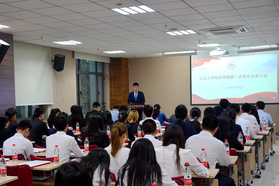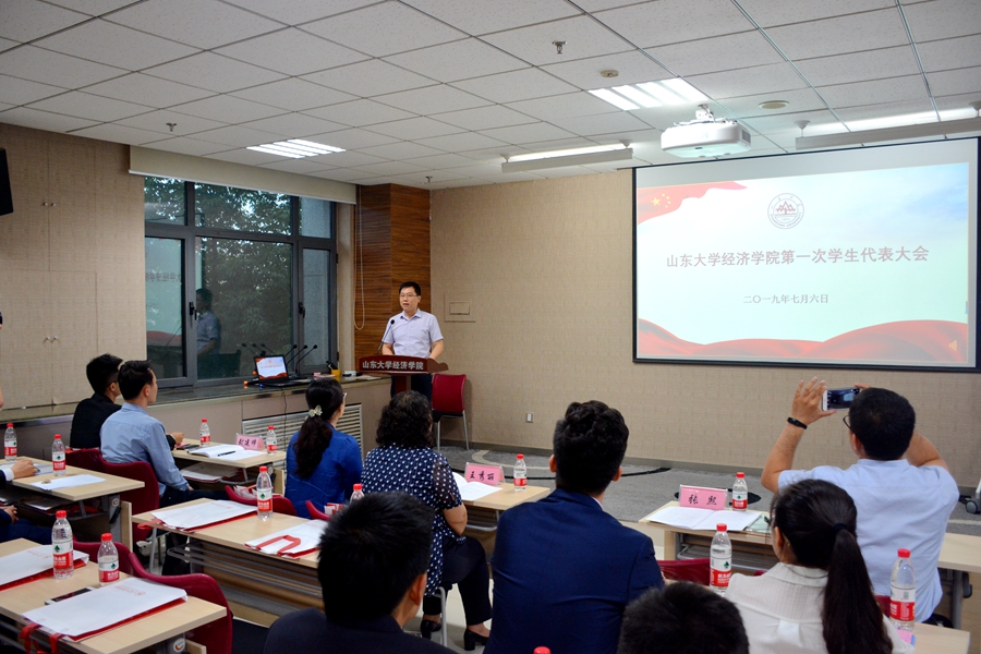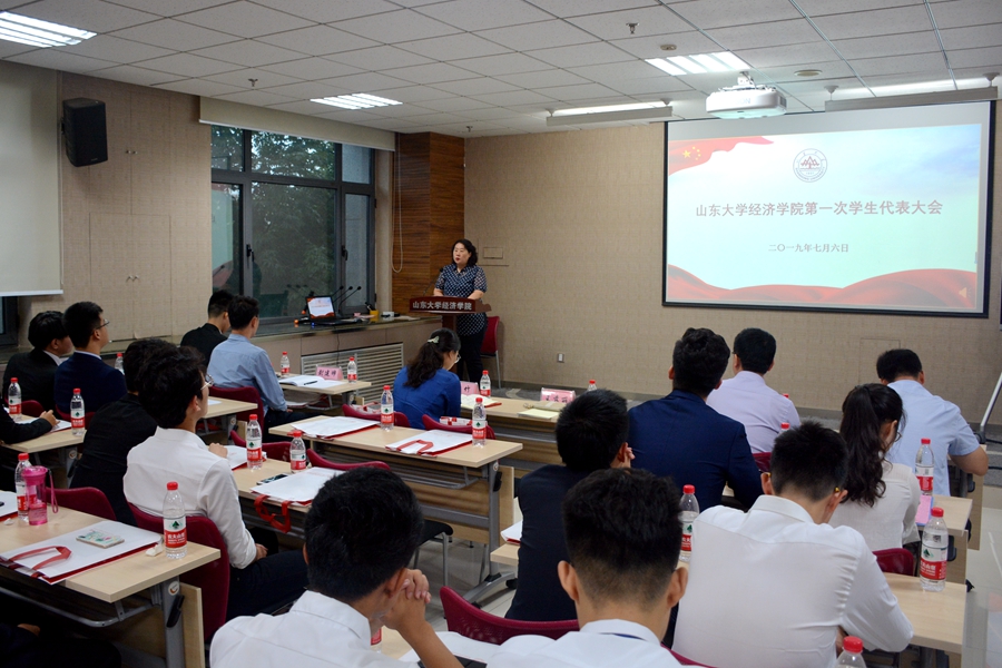 王秀丽代表学院党委对大会的召开表示祝贺。她肯定了学院学生会在服务学生成长成才方面发挥的重要作用,对学生会和全体经院学子提出了希望:一是坚定理想信念,听党话,跟党走,用习近平新时代中国特色社会主义思想武装头脑,指导实践;二是刻苦学习,艰苦奋斗,做追求卓越的山大人、经院人;三是学生会要加强自身建设,争做德智体美劳全面发展的模范先锋,脚踏实地,服务师生。