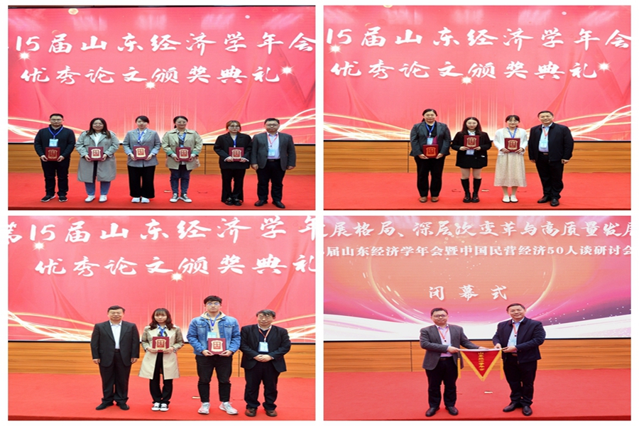 第15届山东经济学年会优秀论文颁奖典礼和闭幕式由曲创教授主持。经过专家评审,本次大会评出优秀论文一等奖2篇、二等奖3篇、三等奖5篇。山东理工大学yl7703永利官网副院长张志新教授、泰山学院经济管理学院张立柱教授、yl7703永利官网臧旭恒教授、中国人民大学杨万东教授分别为获奖作者代表颁奖。