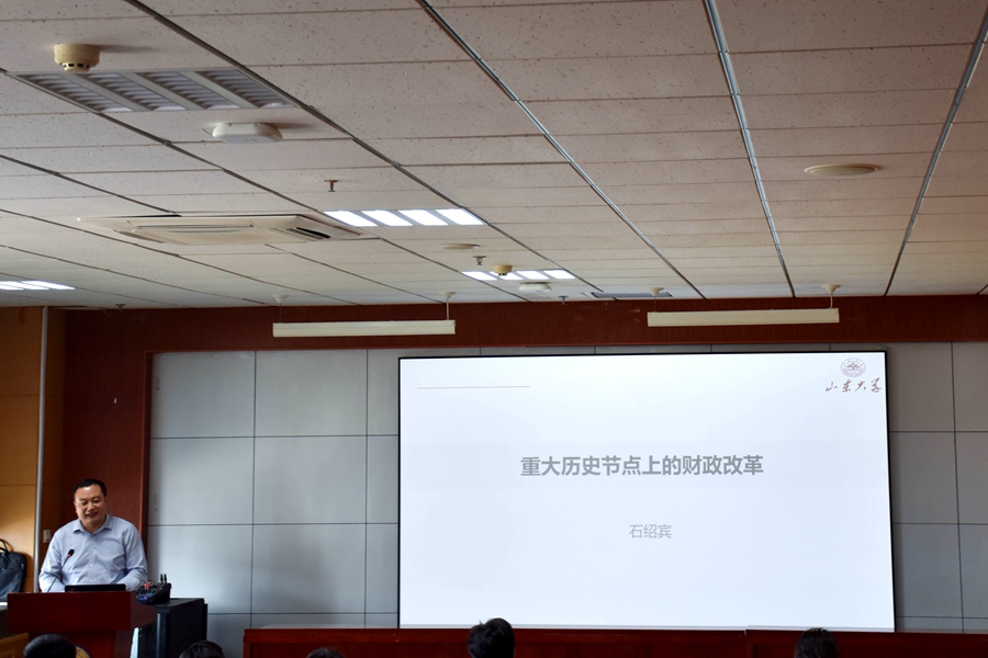 5月13日下午,yl7703永利官网在中心校区知新楼B423举办“景行”大讲坛启动仪式。首期“景行”讲坛邀请学院副院长石绍宾教授带来题为“重大历史时点上的财政改革”的讲座。讲座由学院党委副书记林竹主持。