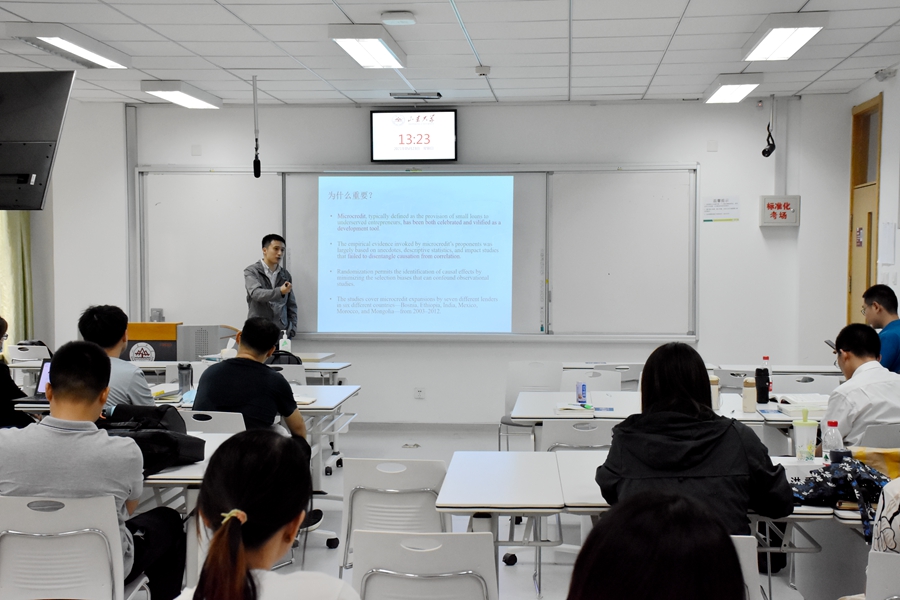 报告主要从微型金融和普惠金融的概念内涵、发展演进、实践价值、数字普惠金融四个方面展开论述。报告介绍了发展中国家金融体系的二元性,指出发展中国家正规金融与非正规金融共存共生的普遍现象,并给出微型金融的概念,从成立“扶贫经济合作社”、推行以扶贫为目标的小额信贷项目、商业性小额贷款公司试点、出台《关于小额贷款公司试点的指导意见》四个重要时间节点展示了微型金融在中国的演进历程。报告阐述了普惠金融的起源与概念,强调享受平等金融权利的核心;讲解了从扶贫经济合作社、中国扶贫基金会,到农商行、“7+4”类准金融机构,再到村镇银行、中大型商业银行等各类金融机构的普惠金融发展探索;从理论与实践的视角分析了微型金融和普惠金融对于降低贫困发生率和促进经济增长的重要价值。最后,基于新型数字业务的兴起与发展,报告介绍了数字普惠金融的主要业务形态,并总结了数字普惠金融具有提高服务的可获得性和覆盖面以及降低服务成本等特点。讲座结束后,张博就讲座中的相关问题与参会学生进行了交流与探讨。