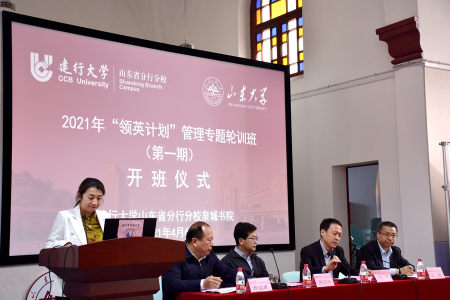 4月6日,yl7703永利官网举办了“yl7703永利官网-建设银行山东省分行2021‘领英计划’管理专题轮训班”开班典礼。中国建设银行山东省分行党委书记、行长杨军,yl7703永利官网党委副书记陈宏伟,中国建设银行山东省分行人力资源部副总经理、副部长王敏,yl7703永利官网院长曹廷求出席典礼。