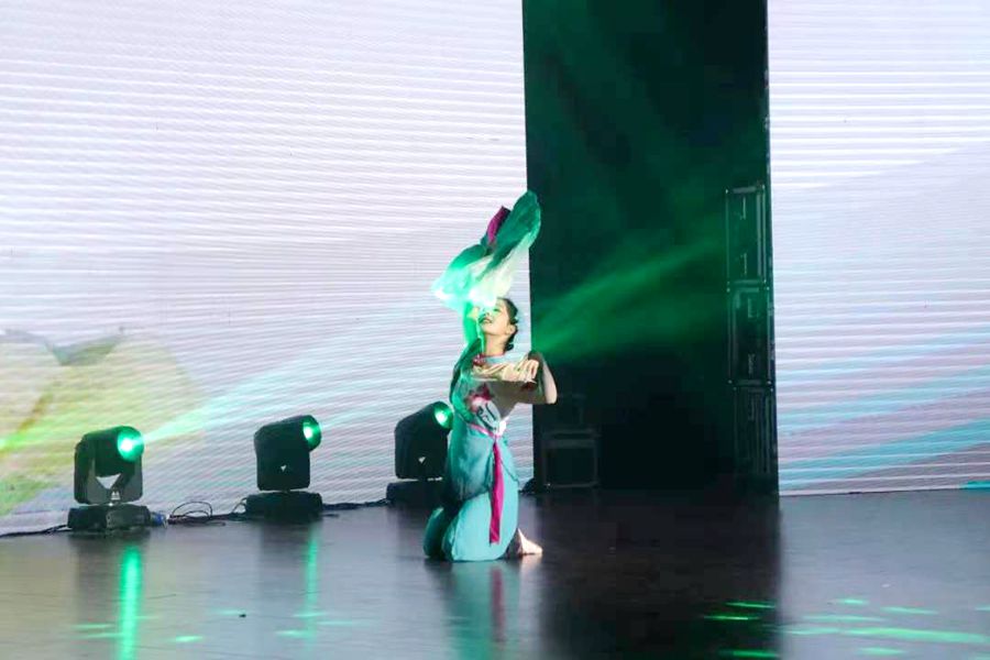 在“济济英才四海来”篇章,器乐合奏《织风结》恬淡娴静,透着婉约的古典意蕴,使观众沉浸于古典美的绚烂中。跆拳道击破《乘风破浪》让人耳目一新,一套拳法行云流水,一声口号气势如虹,呈现了青春的昂扬风貌。胶州秧歌《咏荷》,荷叶裙边随音乐节拍飞舞,将会场带到了生机盎然的荷花池边,展现独特的民族特色。歌曲《你的答案》驱散黑暗,丢弃所有的负担,给人振奋人心的力量。相声表演《新潮相声》构思精巧,妙语连珠,又一次将会场气氛推向新的高峰。