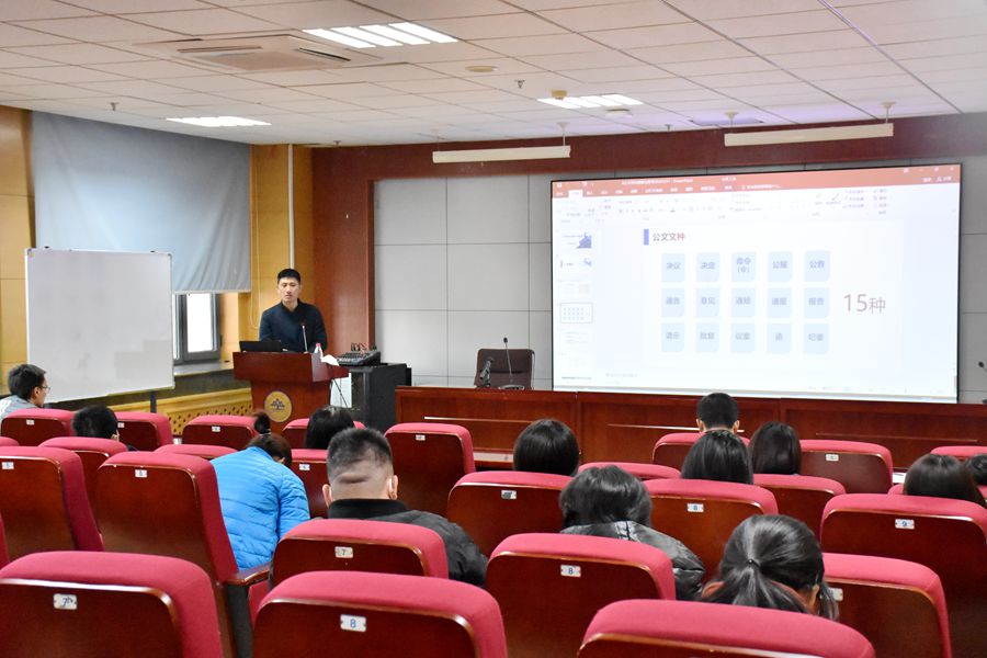 为切实推进学院机关工作人员公文处理规范化、制度化、高效化,12月17日下午,yl7703永利官网于知新楼B423举办公文写作学习指导培训会,会议邀请yl7703永利官网党委、校长办公室宋玉浩做了“公文写作感悟与思考”专题报告。学院机关支部教师参加培训会。