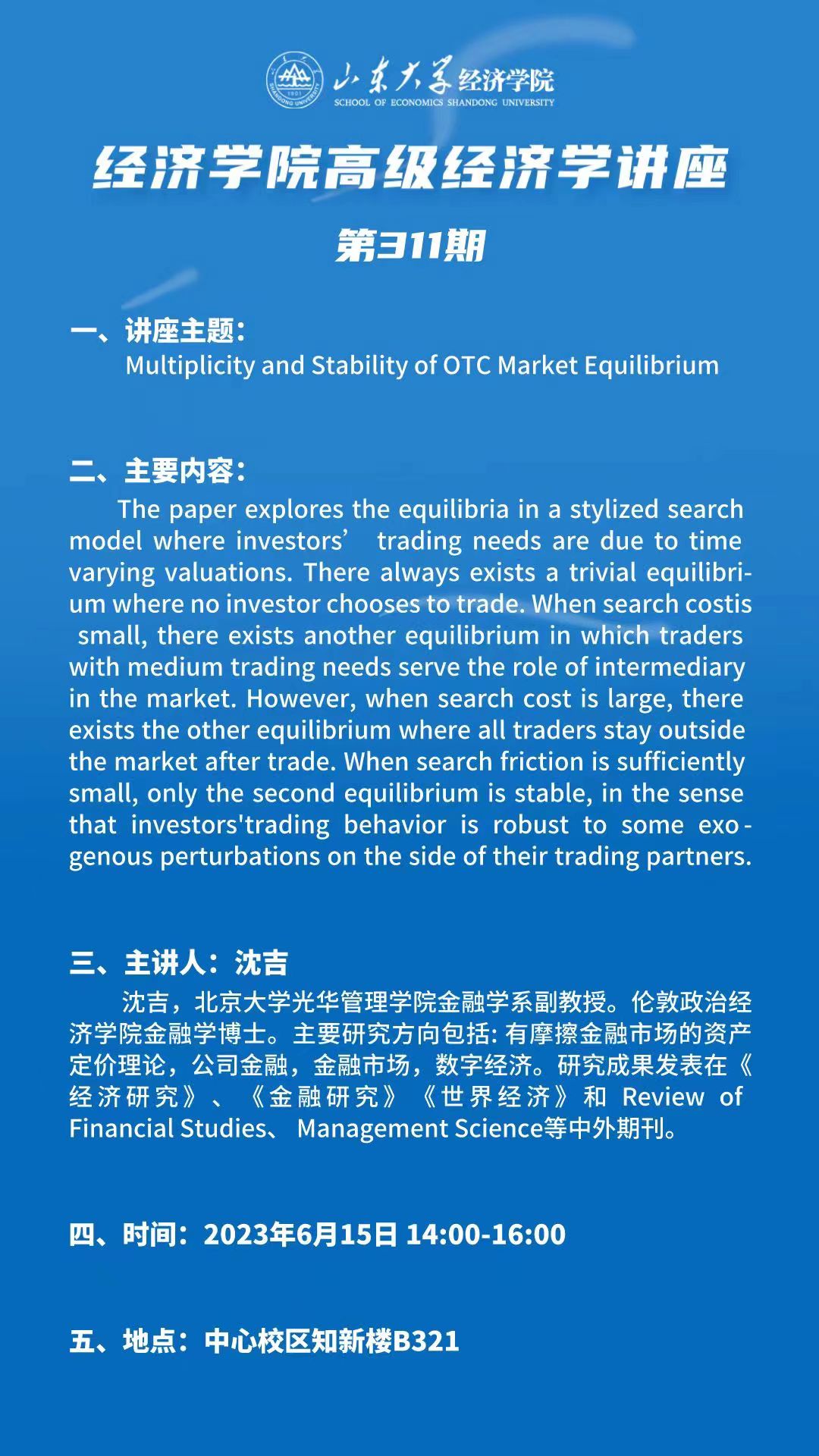 Multiplicity and Stability of OTC Market Equilibrium(yl7703永利官网高级经济学进座 第311期)