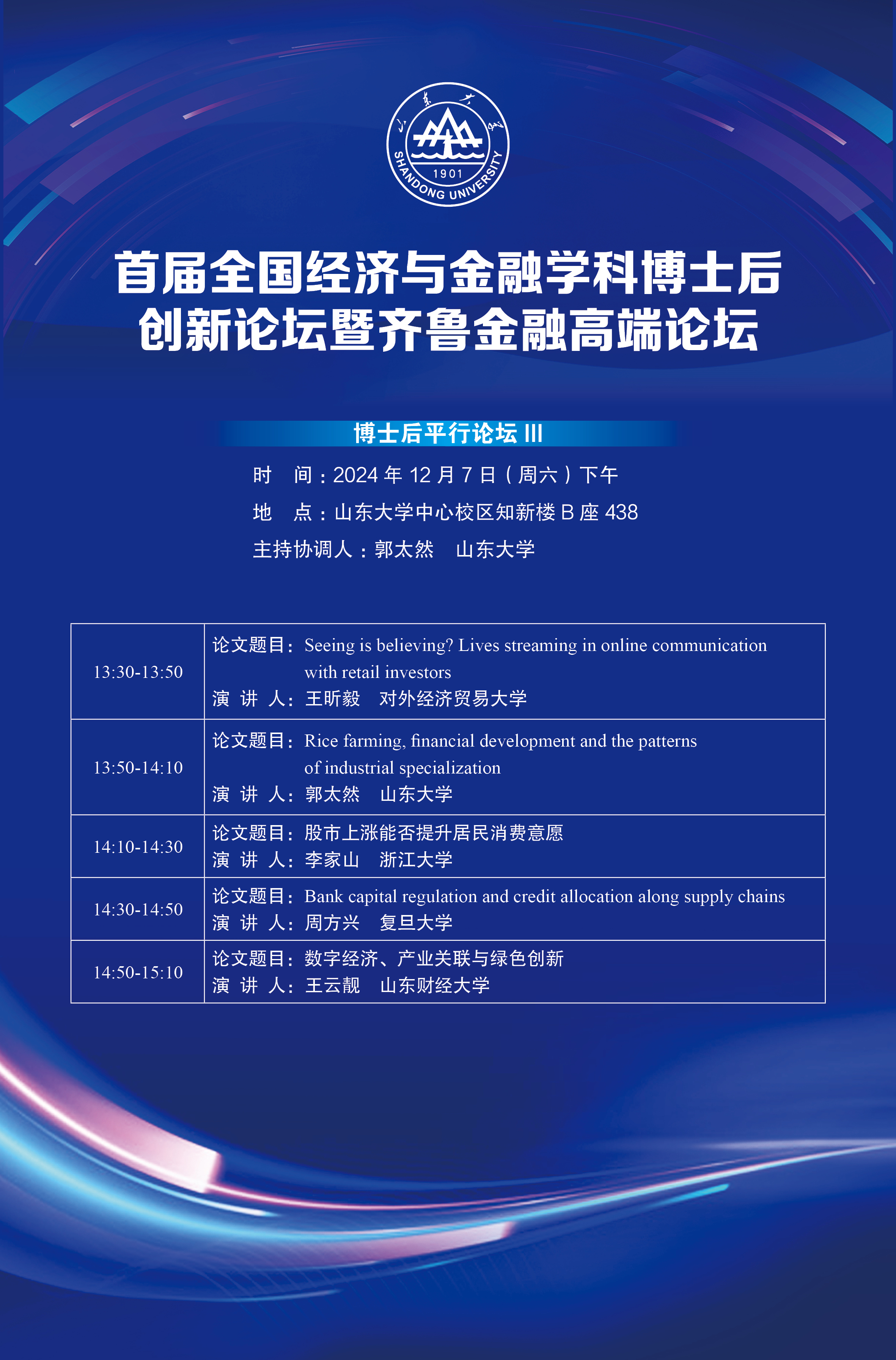 首届全国经济与金融学科博士后创新论坛暨齐鲁金融高端论坛