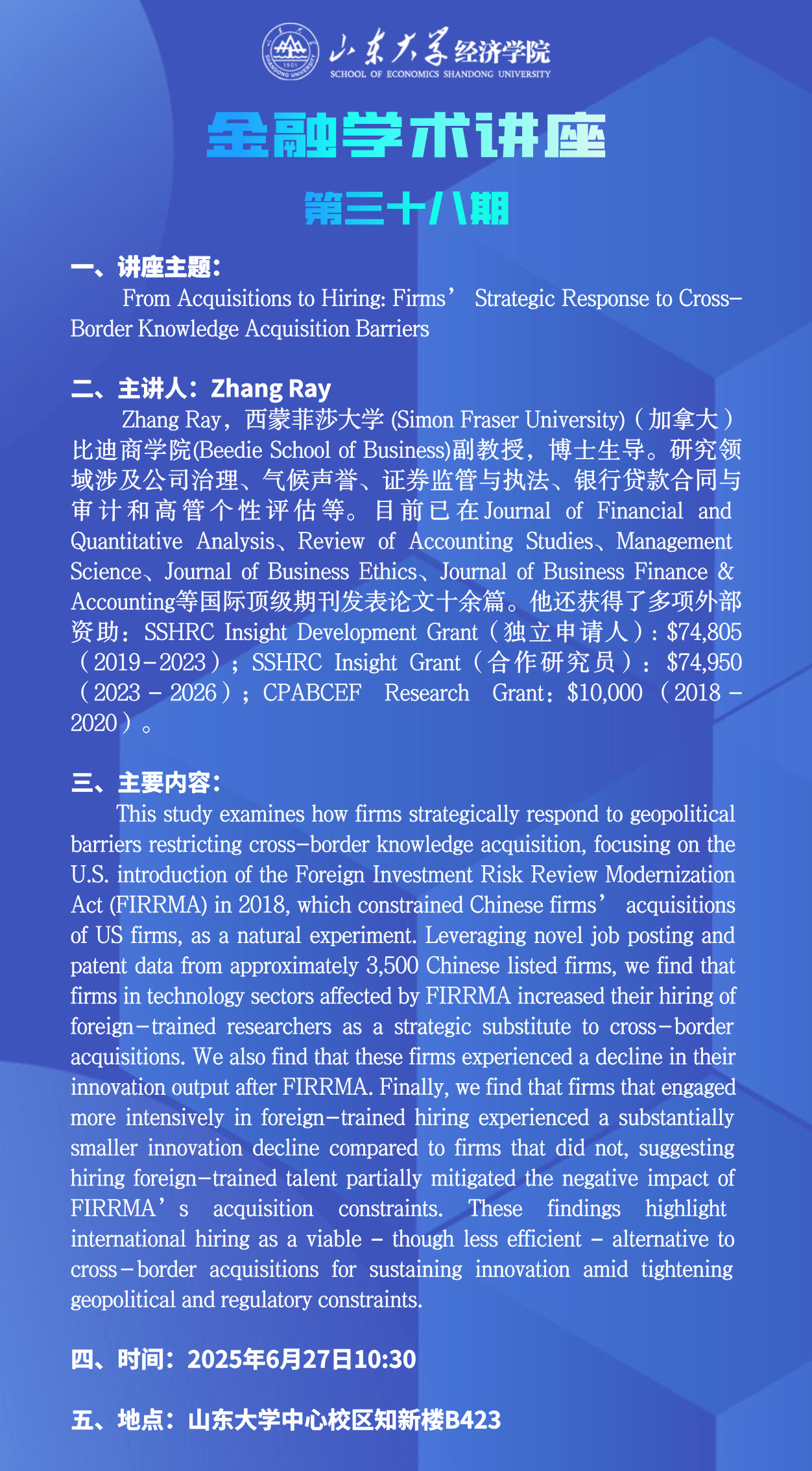 From Acquisitions to Hiring: Firms’ Strategic Response to Cross-Border Knowledge Acquisition Barriers(金融学术讲座第三十八期)