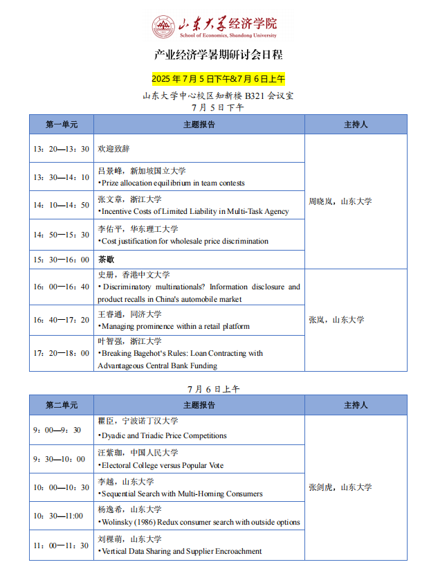 产业经济学暑期研讨会