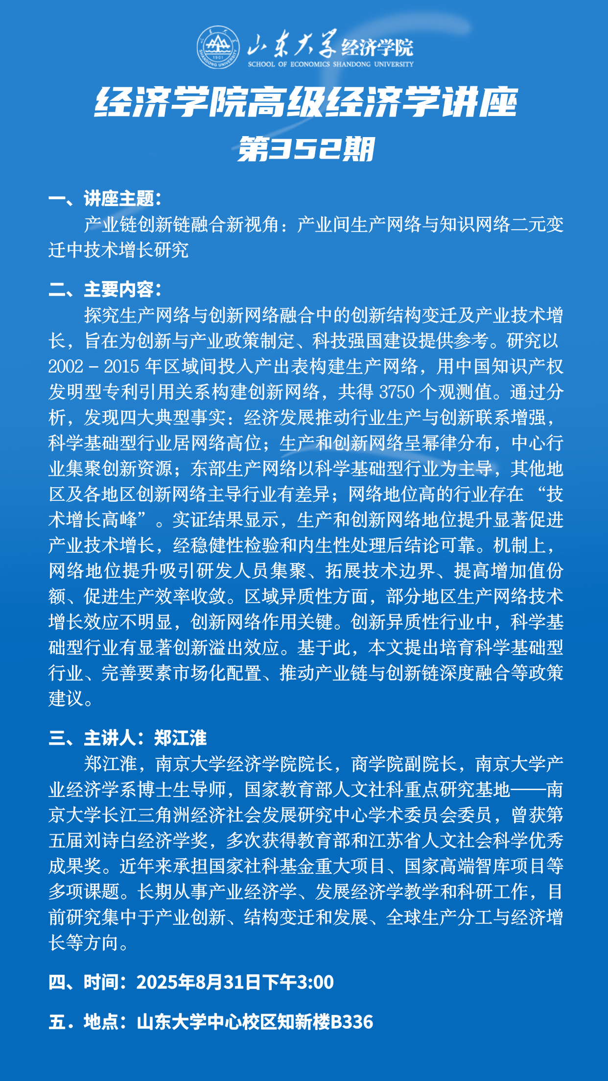 产业链创新链融合新视角:产业间生产网络与知识网络二元变迁中技术增长研究(yl7703永利官网高级经济学讲座第352期)