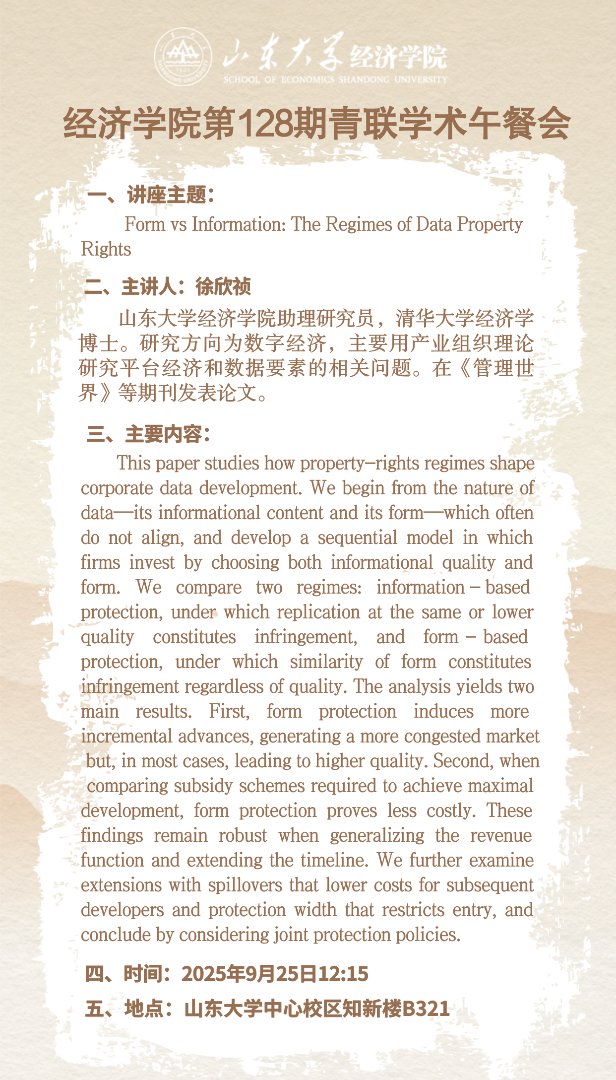 Form vs Information: The Regimes of Data Property Rights (yl7703永利官网第128期青联学术午餐会)