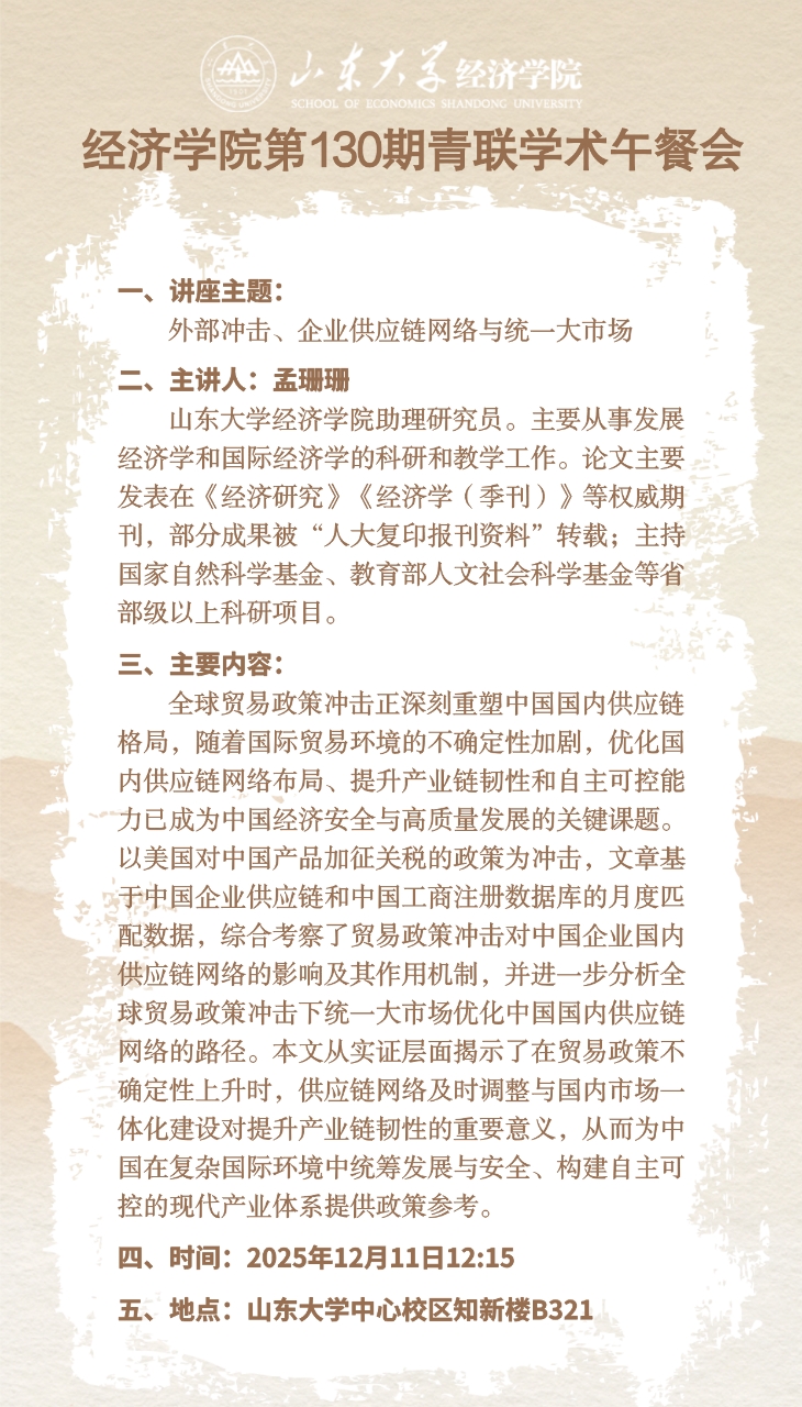 外部冲击、企业供应链网络与统一大市场(yl7703永利官网第130期青联学术午餐会)