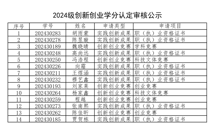 经学院审核,以下同学符合创新创业学分直接认定要求,特此公示。