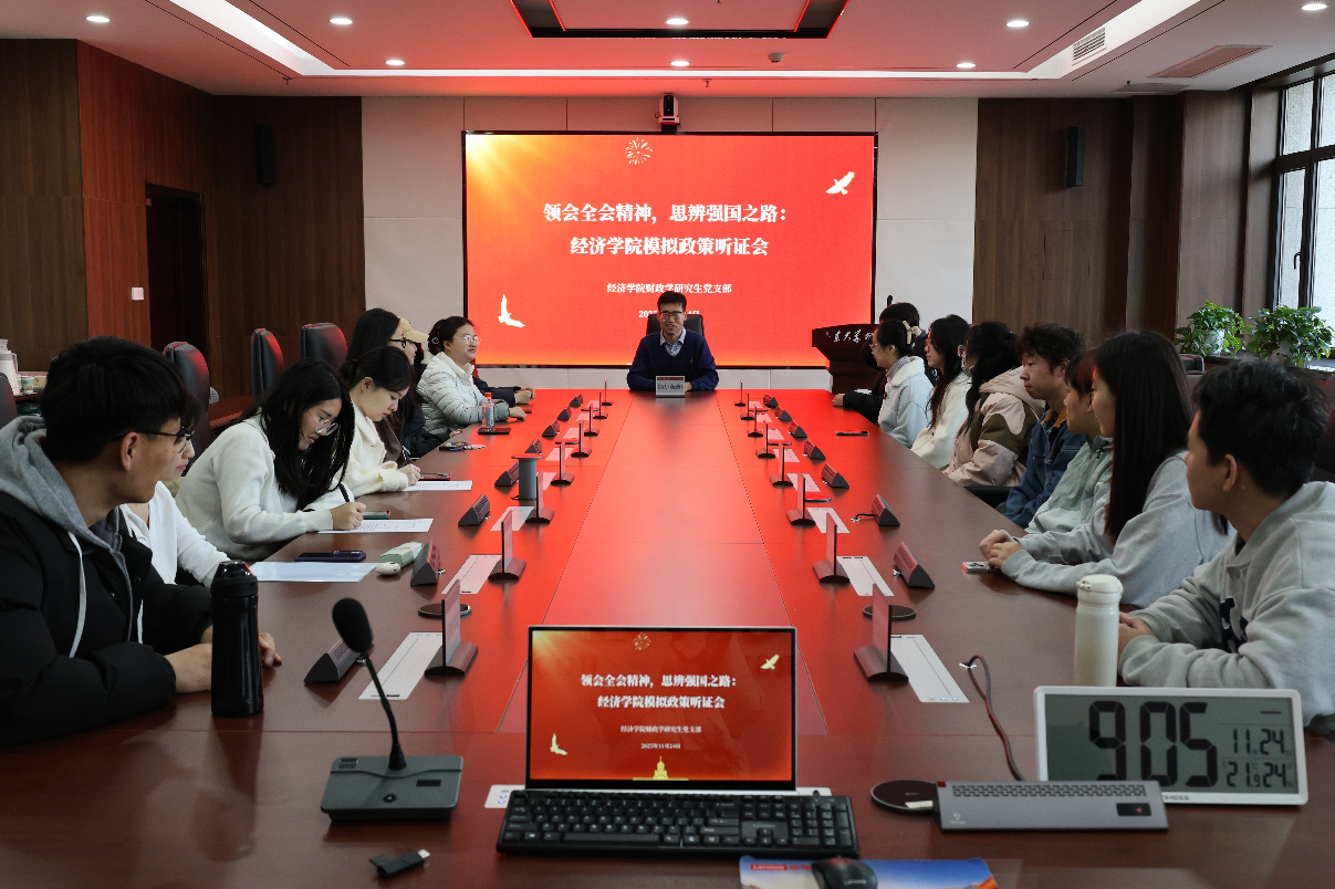 为深入学习贯彻党的二十届四中全会精神,充分发挥研究生党建“双百”“双十”示范引领作用,11月24日,yl7703永利官网财政学研究生党支部开展模拟政策听证会主题党日活动。此次活动以“领会全会精神,思辨强国之路”为主题,yl7703永利官网财政学研究生党支部全体党员、财政系教师党支部党员代表参加活动。